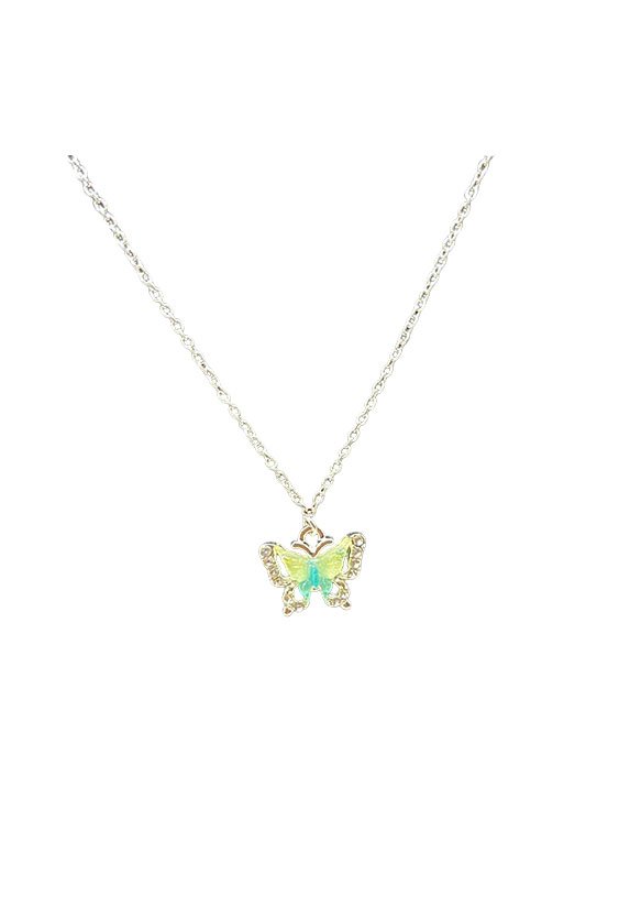 Silver necklace with Sparking Rhinestone with yellow and green butterfly with diamond accents